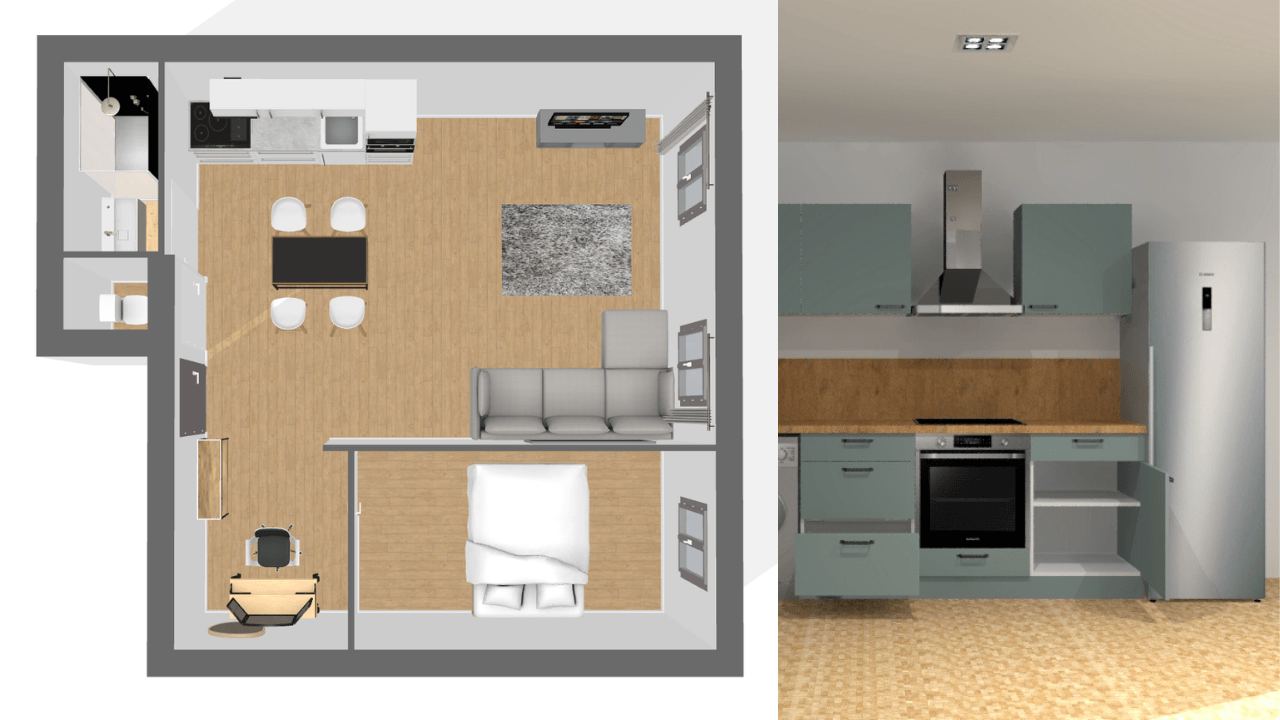 > installation d’une cuisine ouverte sur le séjour
