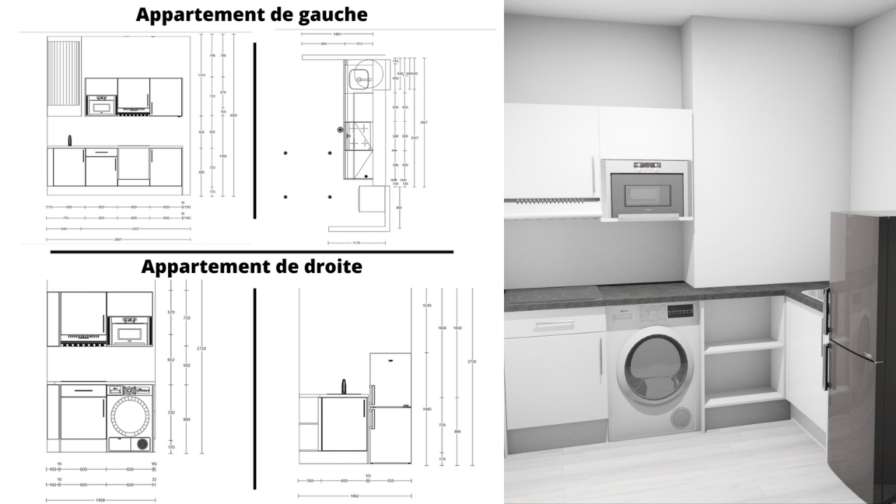 Nous avons fait appel à un cuisiniste pour réaliser les plans et agencement des 2 cuisines.