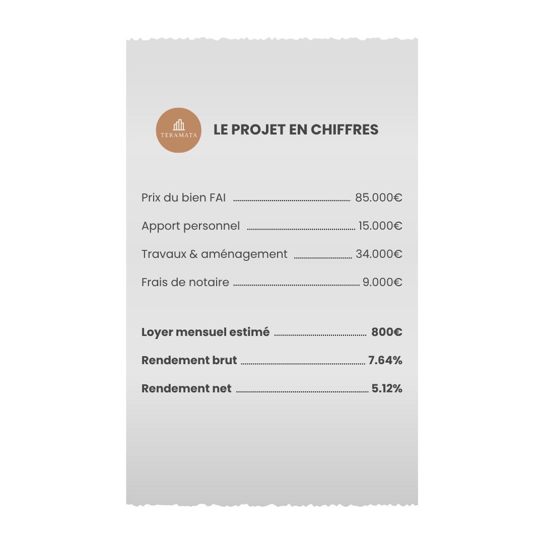 Problème initial : il avait très peu d’apport. Grâce à notre courtier partenaire, il obtient un financement quasi intégral avec un excellent taux. Apport total engagé : 15 000 €.
